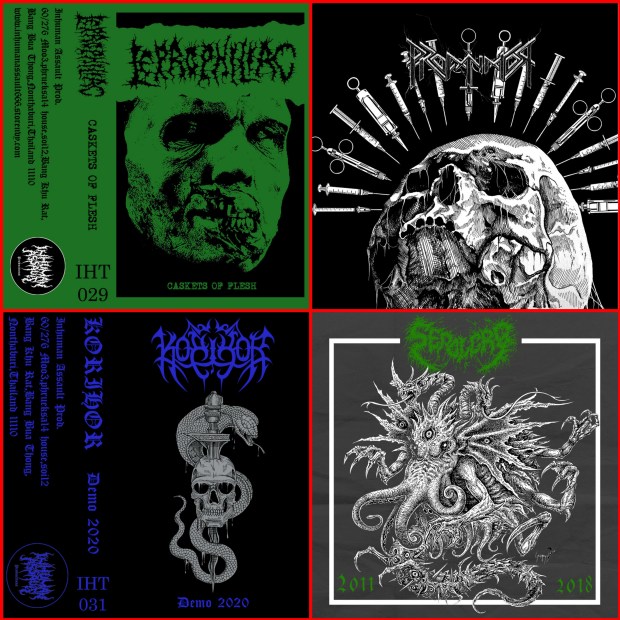 5. A SHITLOAD OF BANDS, A SHITLOAD OF ALBUMS, A SHITLOAD OF SONGS (Death/Grind/Crust – Inhuman Assault Productions). So, yeah. I guess this section's not really like the others, or any other item in recent memory. And that's for the simple fact that I opened the Bandcamp page for a Thai death-metal label by the name of Inhuman Assault Productions and what ensued was an avalanche of albums, bands, riffs, growls, blast beats and overall filth from which I have yet to recover. So I did what any sensible person would do, which is to buy a whole bunch of tapes, and now all that is left for you, my dear friends, is to just plunge in. More specifically, they've been on somewhat of a tear since late last year, releasing demos/EPs from East Asian bands like Korihor (Philipines), Nocturnal Damnation (South Korea), and Thiland's Reincarnated, as well as bands from elsewhere such as Spain's Leprophiliac and Americans Ritual Genocide, as well as providing tape editions to older records from bands such as Mexico's Profantor, Italy's Sepolcro and, well, MANY others. Incredible quality across the board, and just a wonderful find. I'll add a few selections here.